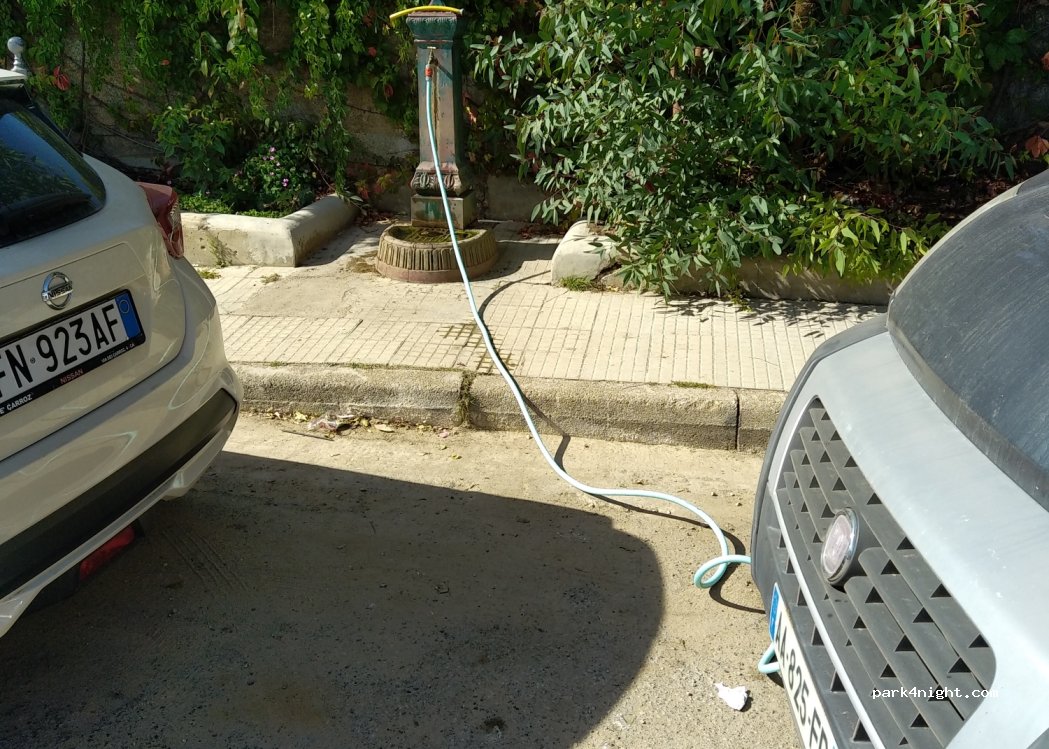 Fontaine avec un bon débit en bord de route. Robinet quart de tour.