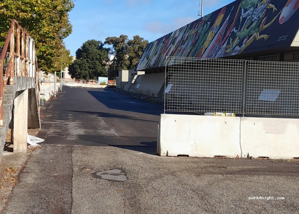 Parcheggio vicino agli impianti sportivi, adiacente alla sosta autobus turistici. Non ho trovato nessun divieto di sosta camper o altri cartelli espliciti.