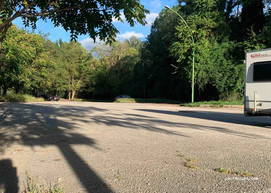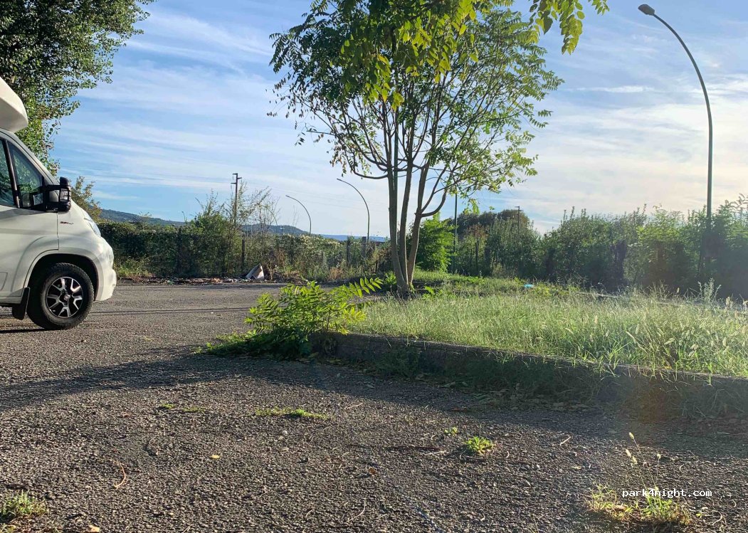 Places de parking pour le Parco Grassano. Complet le week-end, bon parking en semaine (juste). Quelques poseurs la nuit.