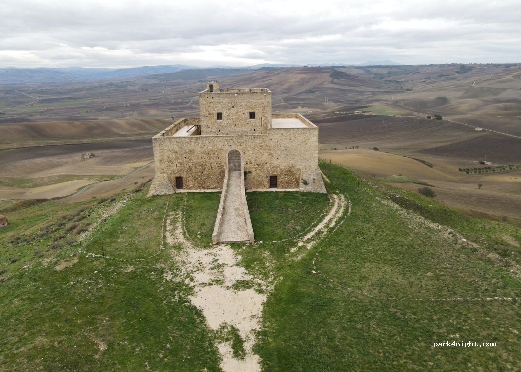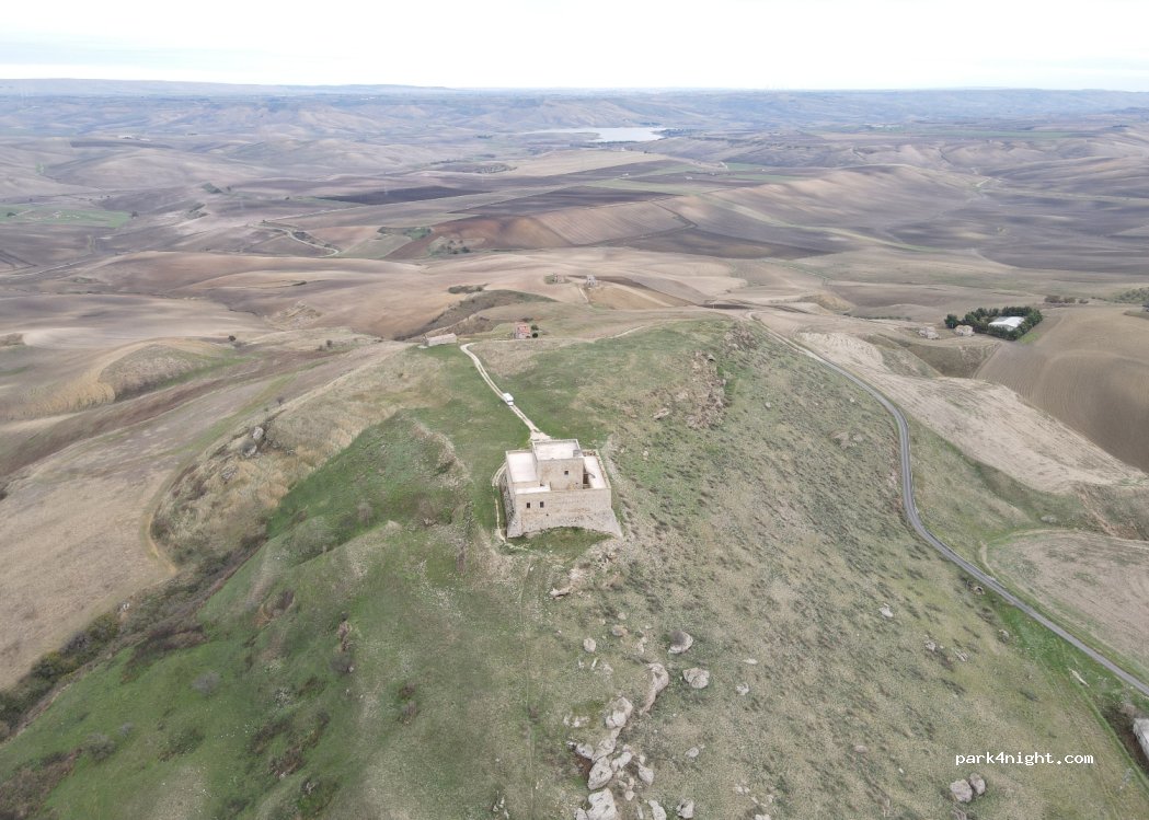 Parking adjacent au château de Monteserico (fermé et non ouvert aux visiteurs) Aucune restriction, magnifique panorama à 360 degrés. Route étroite et cahoteuse, adaptée aux fourgons, je recommande d'y accéder quand il ne fait pas encore nuit.