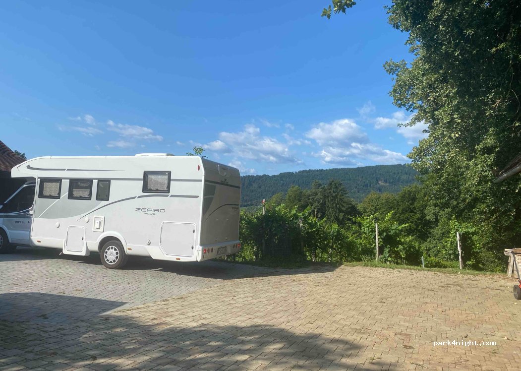Excellent place to stay with a friendly welcome and great views. very quiet rural location. Toilets available but no showers. Not sure about emptying grey water. Superb wine, especially the rose frizzante. Lovely little farm shop with wines and local produce. Highly recommended - we emailed in advance to reserve a place as they can only accommodate a few vans.