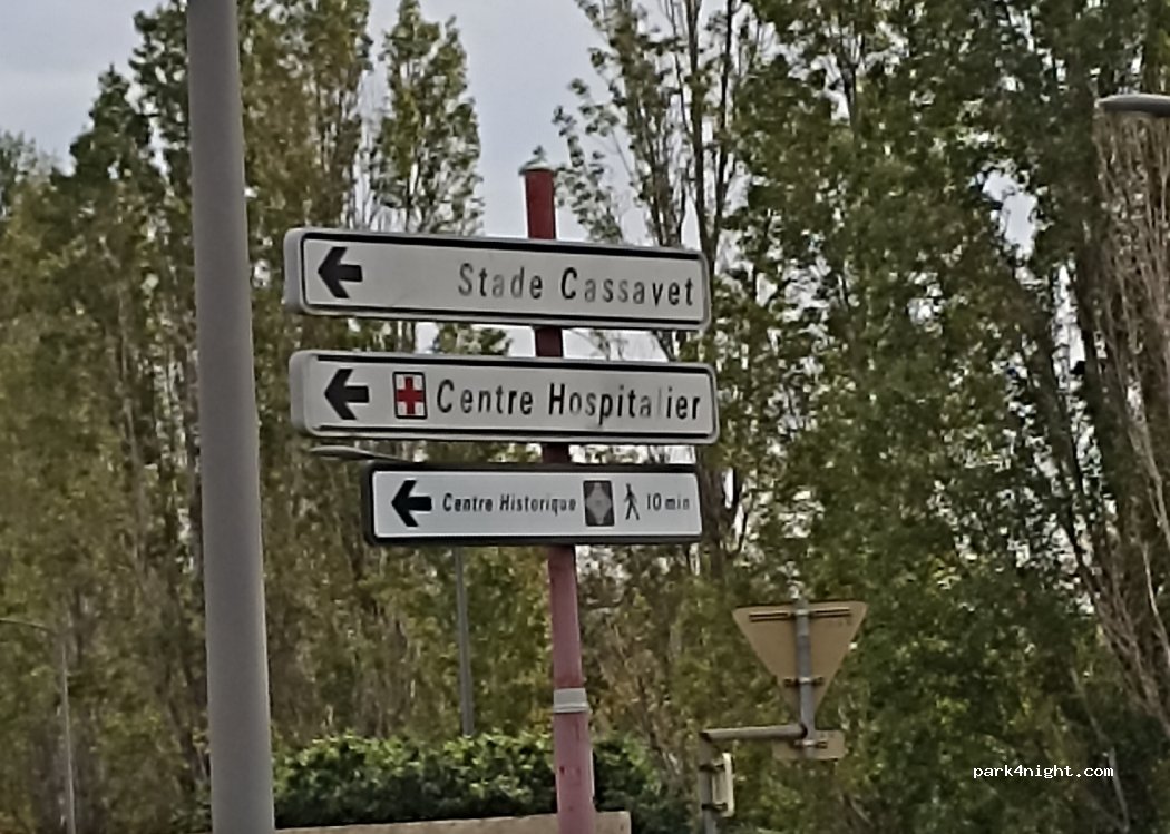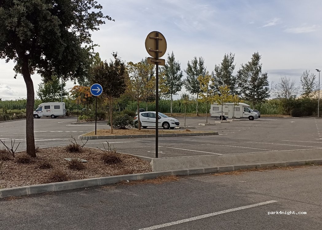 Mauraussan parking. 10 minutes walk from the historic center. access via a roundabout. I stayed there for the day to visit the city.