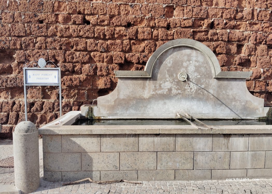 Bagni pubblici e fontana pubblica fianco a fianco.