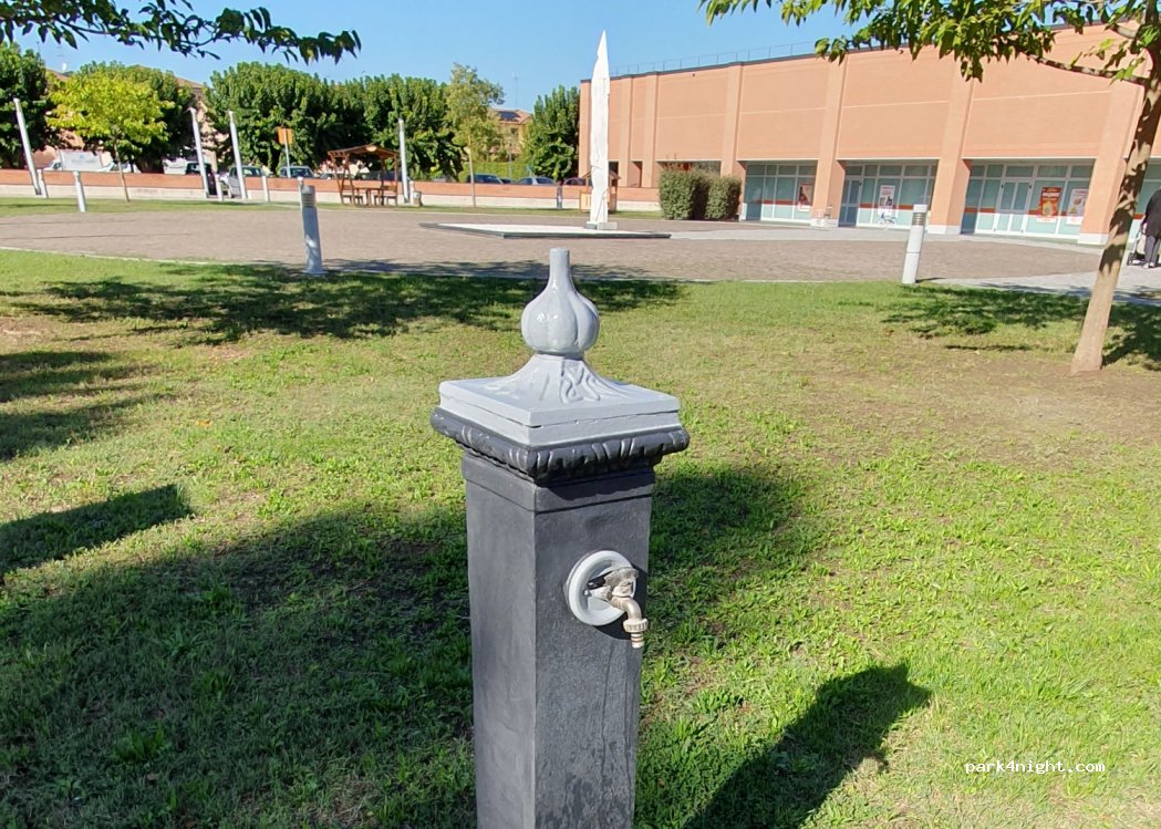 Faucet at the Conad supermarket. There are also large garbage cans and playground.