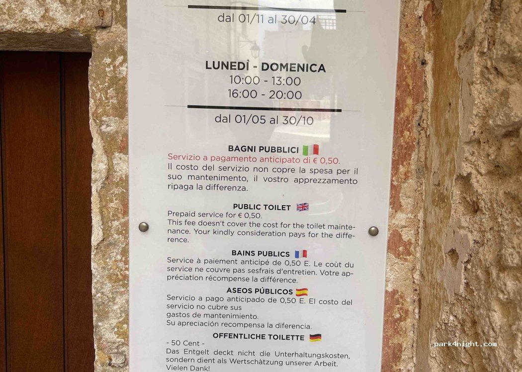 Bagni pubblici e 2 docce calde (senza limiti di orario) nella toilette degli uomini. Dopo qualche discussione, in quanto donna, accompagnata da mio marito, mi è stato permesso anche di fare la doccia qui. Consigliato!