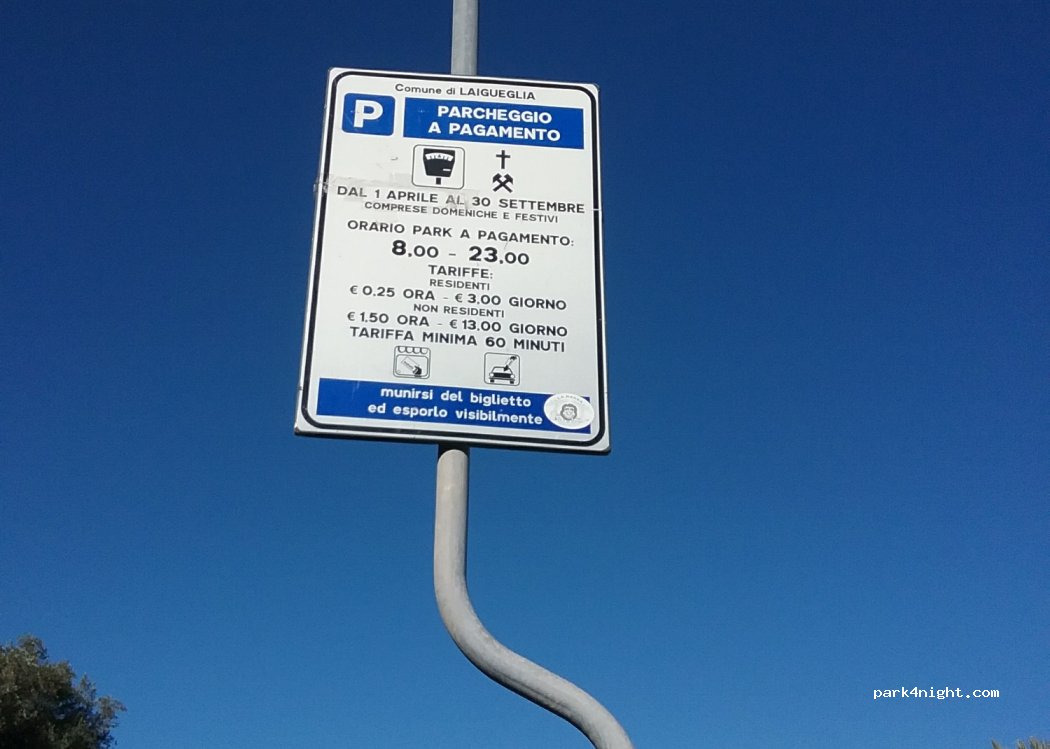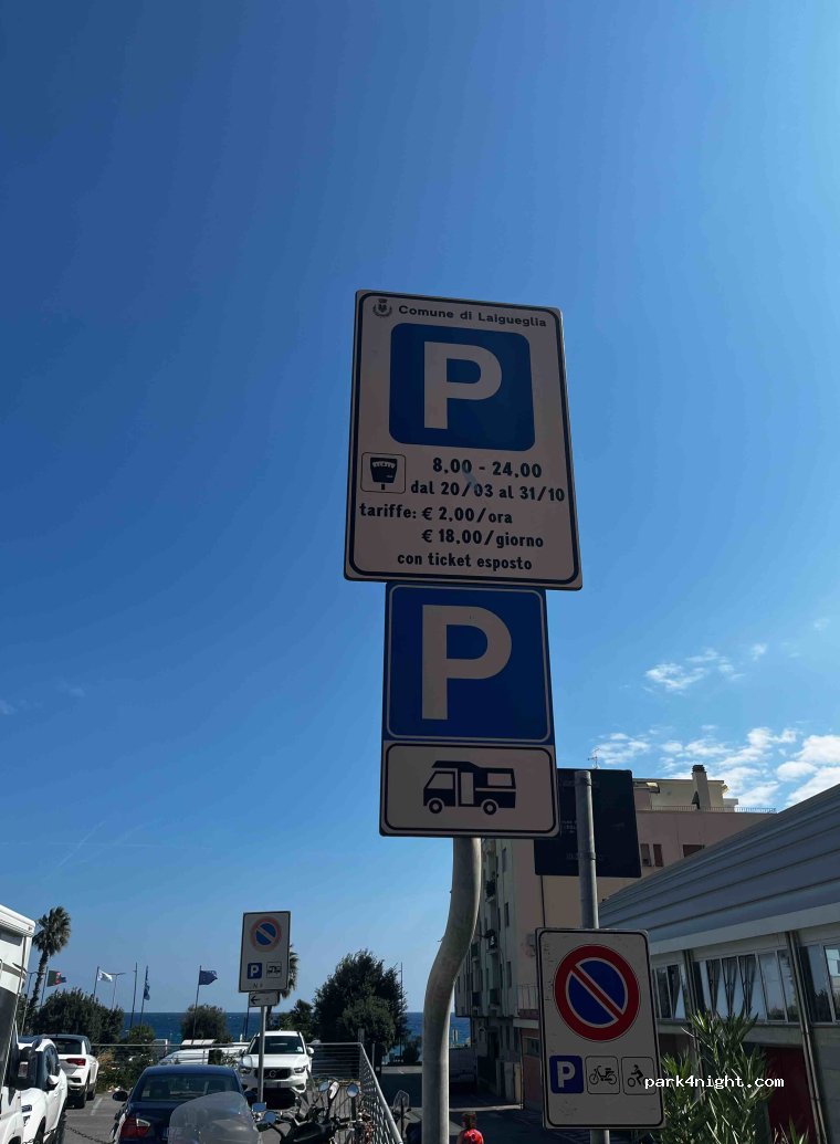 Parcheggio asfaltato abbastanza in piano, 10 posti per camper anche grandi, molto comodo per visitare Laigueglia e Alassio. Unica pecca, piuttosto rumoroso, ogni giorno fin dalle prime ore del mattino, è un susseguirsi di mezzi della nettezza urbana con cicalini di vario genere e soprattutto la vicinissima Autofficina fa forti rumori di ogni tipo.