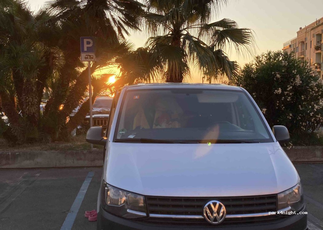 Camper parking near the cemetery but on the seafront, 6 spaces. Paid from end of March to end of October free out of season. Also accessible for long campers (7m).