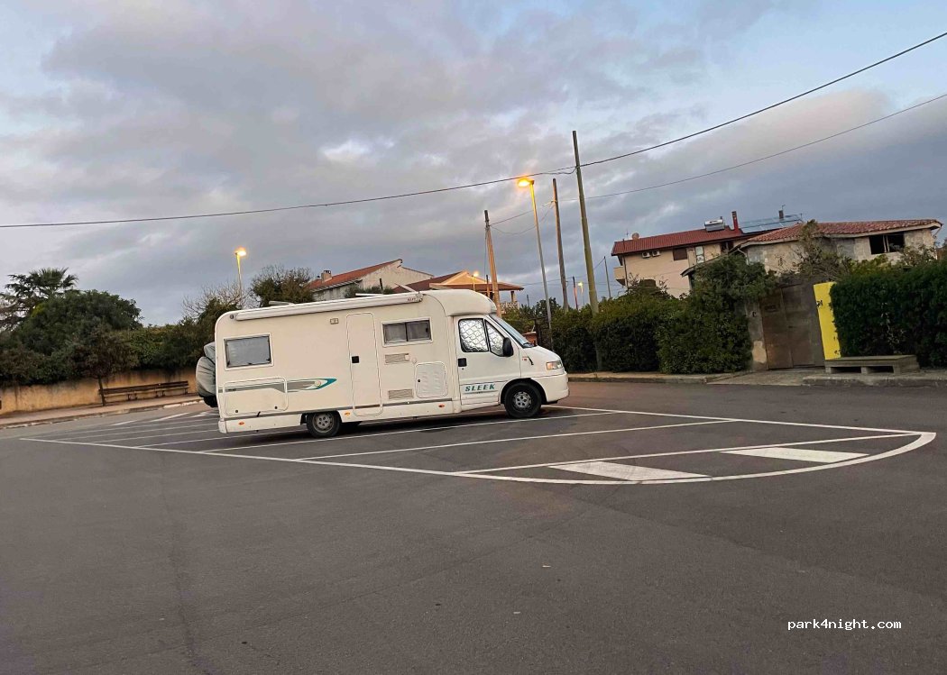 Siamo venuti a Saboris Antigus e l'organizzatore dell'evento ci ha detto di parcheggiare qui. Luogo perfetto per visitare la città. Molto silenzioso anche di giorno. I vicini sono gentili. Abbiamo mangiato una pizza meravigliosa nelle vicinanze. Posto piatto. Nessun servizio, solo un parcheggio senza ombre.