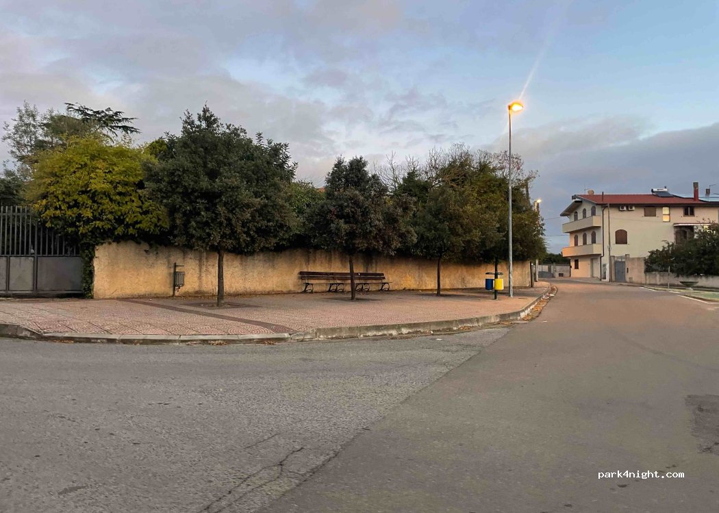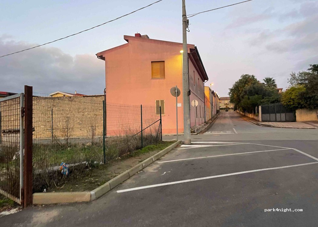 Nous sommes arrivés à Saboris Antigus et l'organisateur de l'événement nous a dit de nous garer ici. Endroit parfait pour visiter la ville. Très calme même en journée. Les voisins sont gentils. Nous avons mangé une merveilleuse pizza à proximité. Endroit plat. Aucun service, juste un parking sans ombre.