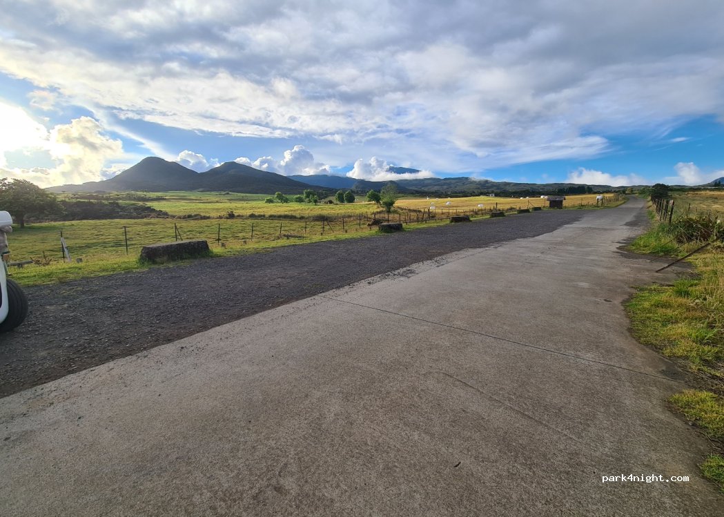 Schlammteichparkplatz, ruhig für eine Nacht. Kein Service, aber eine herrliche Aussicht auf den Piton Bleu. Super flach zum Schlafen. Bietet Platz für mehrere Transporter. Abfahrt zu mehreren Wanderungen. Gute Alternative zum Parken anderswo als auf dem Parkplatz Bois Jolie.