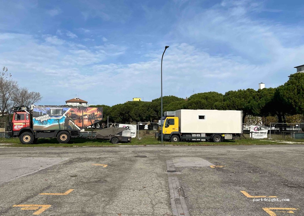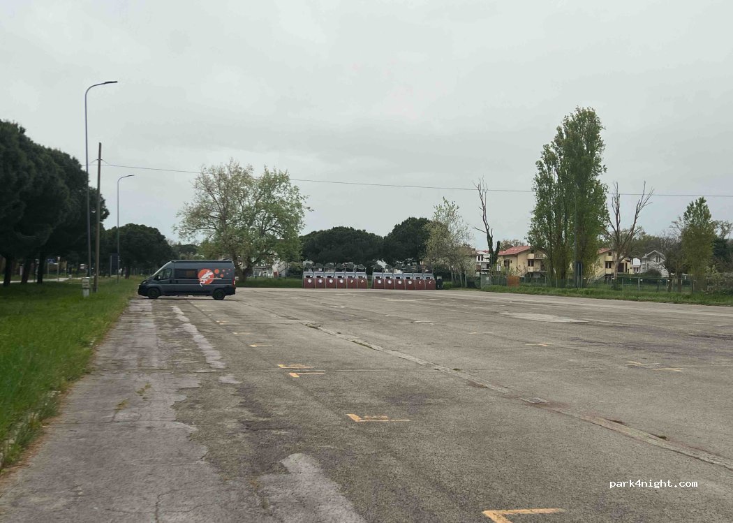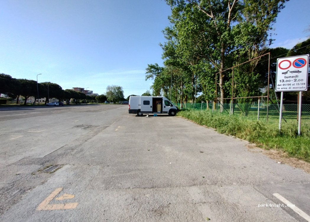 Parcheggio senza limiti di altezza o durata. possibilità di parcheggio nell'erba lungo la sbarra in legno antistante il vecchio parcheggio dei camper. Non c'è nessuno negli edifici circostanti fuori stagione. 100 metri dalla spiaggia con bosco 5 minuti a piedi e fontana. Parcheggio vietato i lunedì dal 1 giugno al 15 settembre: piazza mercato) lavanderia self service a 5 minuti a piedi aperta anche in inverno