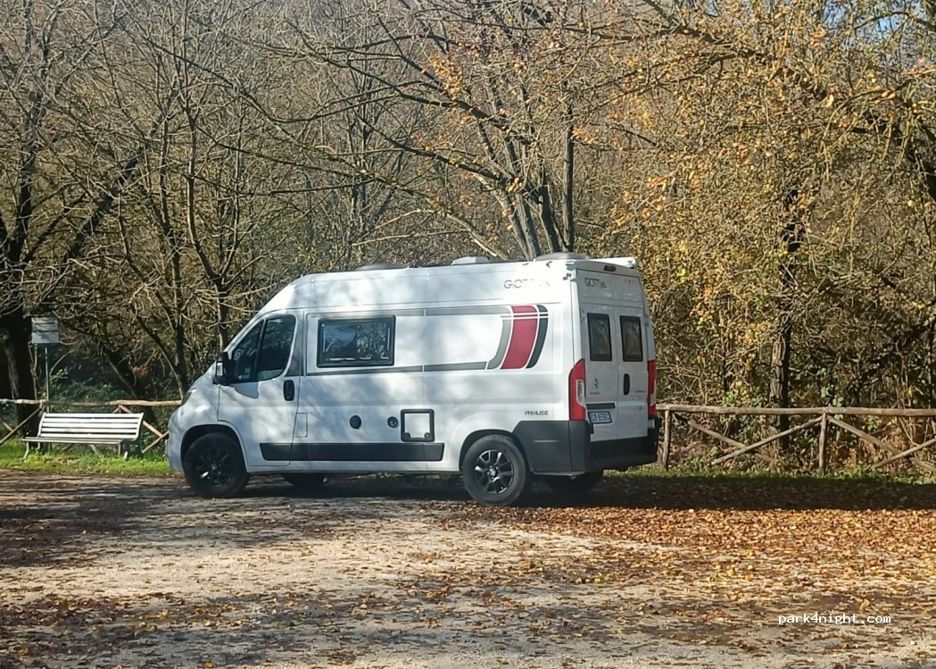 Parcheggio buono appena prima dell'area Pic nic priva di cestini e servizi e un po' sporco. Qualche macchina si ferma perché è una piazzola grande. Ci sono scalette che accedono al lago. Entrano circa 3/4 camper.