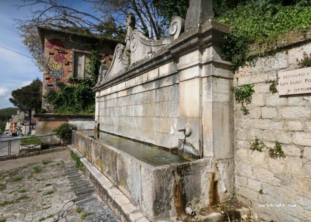 Fontana pubblica, con sosta possibile senza disagi, provvista di imbuto.