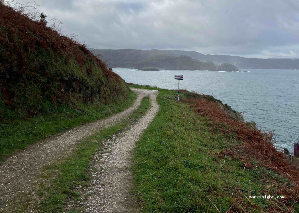 Aparca y pasa la noche en la entrada del faro. No apto para autocaravanas. Se puede hacer con furgoneta, cómoda tamaño T4. Ciertamente se pueden hacer más grandes, pero esto implica dar la vuelta en varios movimientos. Segunda persona recomendable ya que está justo en los acantilados. Paz absoluta, sin tráfico. Acceso por un camino transitable incluso con tiempo húmedo.