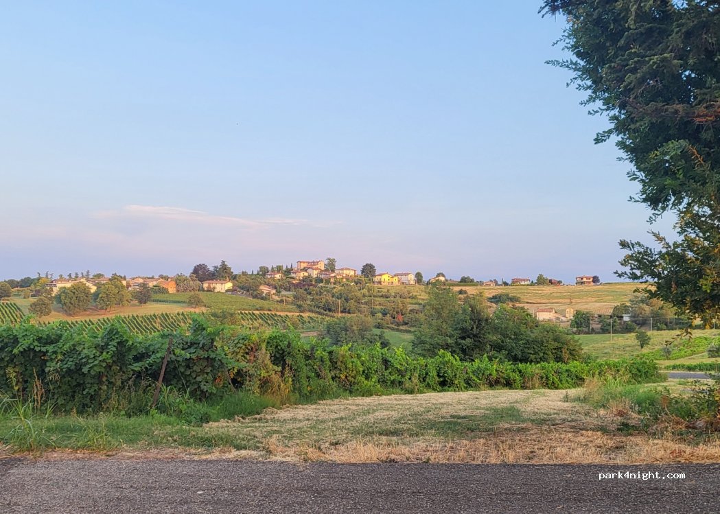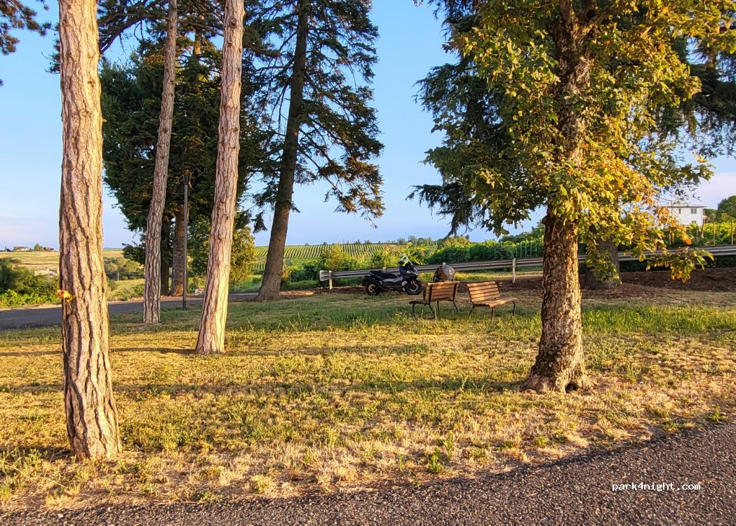 Parfait pour un arrêt pique-nique. Nuit sans doute possible. Belle vue sur les vignes