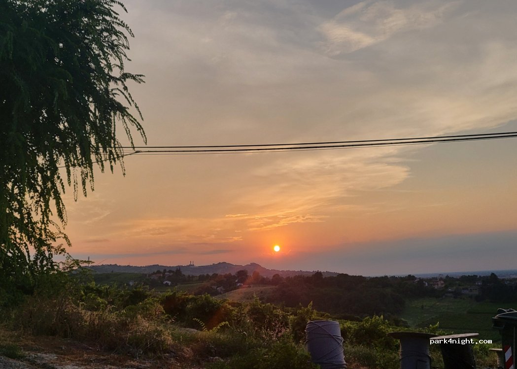 Parking du cimetière. C'est près d'une route. Excellente vue sur les collines de l'Oltrepo Pavese.