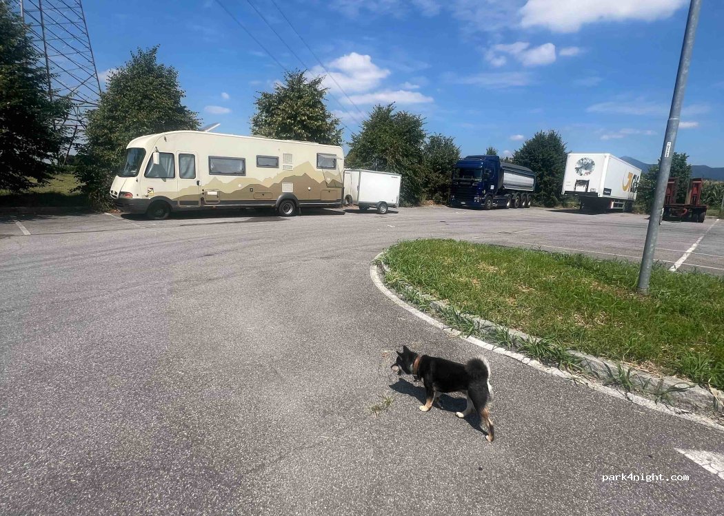 Un endroit qui dépanne bien quand on a un gros gabarit. Un peu bruyant le soir et la journée (véhicule qui font des dérapages dans les rues à côté jusqu’à 00:30) et comme c’est une zone industrielle en journée les camions chargent et déchargent en face. Mais après 00:30 c’était très calme jusqu’à 8:30. Pratique quand on a des chiens pour pouvoir les promener car il y a des champs autour. Il n’y a aucun service juste une petite poubelle. Et réseau 4 G ok.