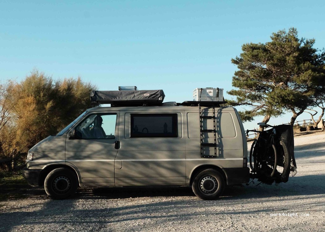 Leider darf man in ganz Baratti nicht Campen und nur bis zu einer max. Fahrzeugbreite von 2,10m parken, dies wird auch regelmäßig von der Polizei kontrolliert und geahndet (150€)!