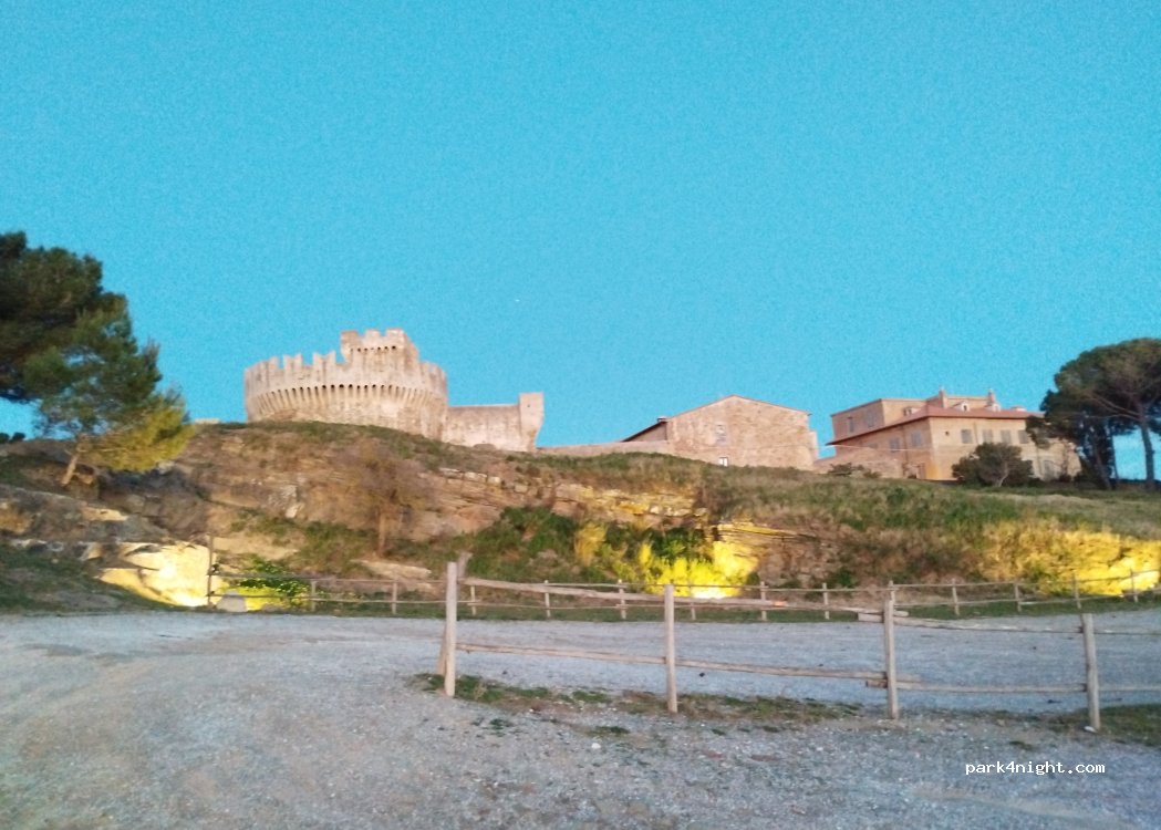 parcheggio del borgo di Populonia, siamo stati due notti la settimana di ferragosto, vista stupenda sul borgo e sul mar Tirreno! Consigliato arrivare non troppo tardi la sera se si vuole visitare o cenare nel borgo, il parcheggio si riempie in fretta. Dopo le 23 il parcheggio si svuota completamente, eravamo solamente alcuni van! Bagni nel borgo aperti di giorno.