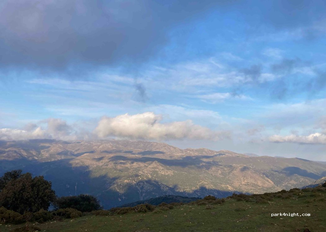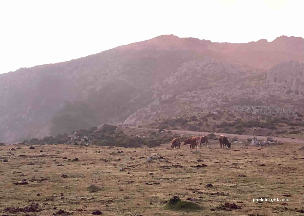 Onder de top van Monte Perdedu. Prachtig staan in de natuur. Ver uitzicht in de dalen en over de gebergten. Vanuit hier kan je mooie wandelingen maken naar de top. Een rustige plek waar de wilde koeien voorbijkomen en de karkassen liggen. Genoeg plekken om te staan en goed bereikbaar via een zandweg met stenen.