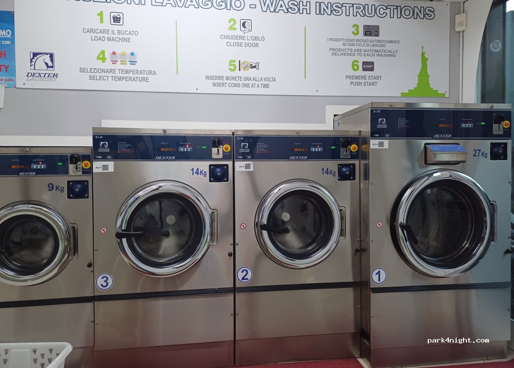 Lavanderia eccellente. Macchine grandi (la più grande 27 kg). Asciugatrici molto buone. Utilizza monete in euro, non gettoni. Parcheggio su una stradina proprio fuori dall'hotel.