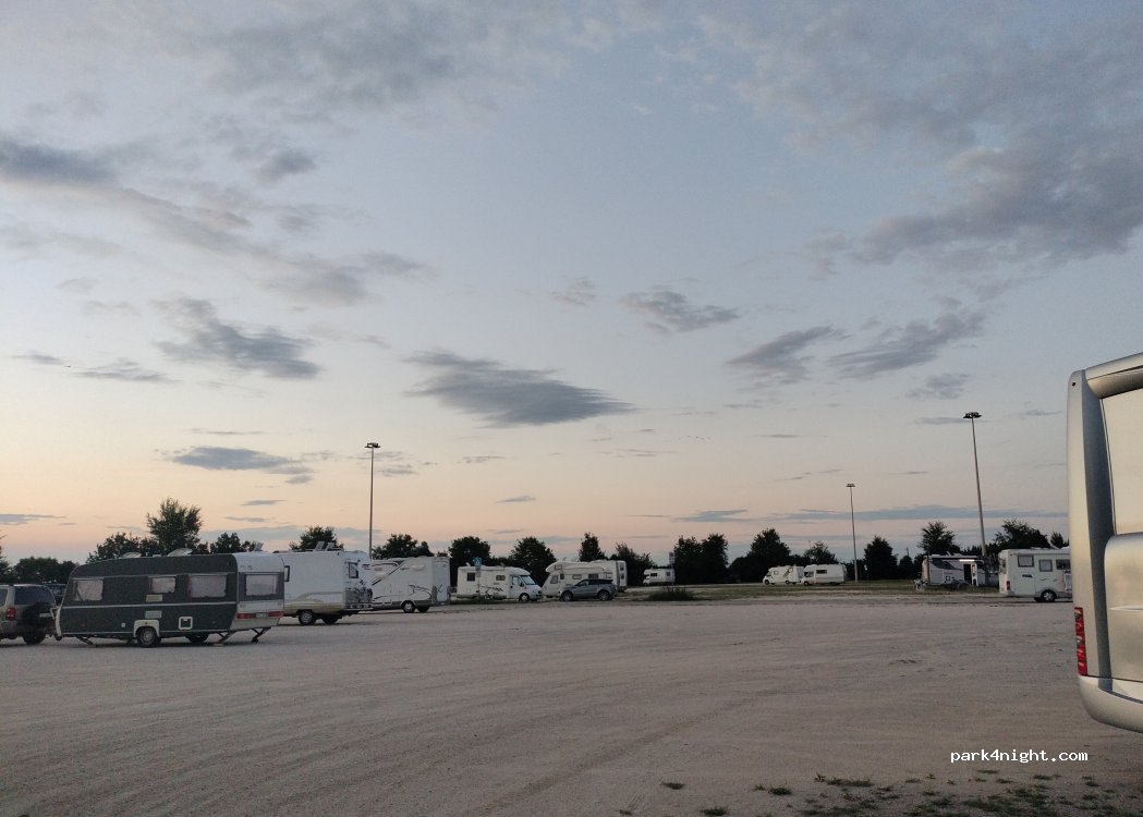 Free parking and lot of places. Good to stay overnight or during short visit of Caorle. It’s hard to find a shade though. Only some places at the edge of the parking lot get some shade. Almost no noise from the main road nearby.