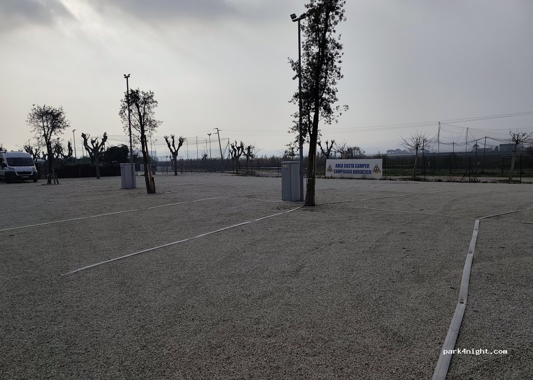 Su Park4night è errato il posizionamento dell'area sosta che invece si trova entrando dentro il cancello del campeggio Adriatico (posto sulla rotatoria) e poi girando a destra. Area sosta confortevole. Docce calde gratuite. Prezzo 8 dicembre 23€ compreso corrente.