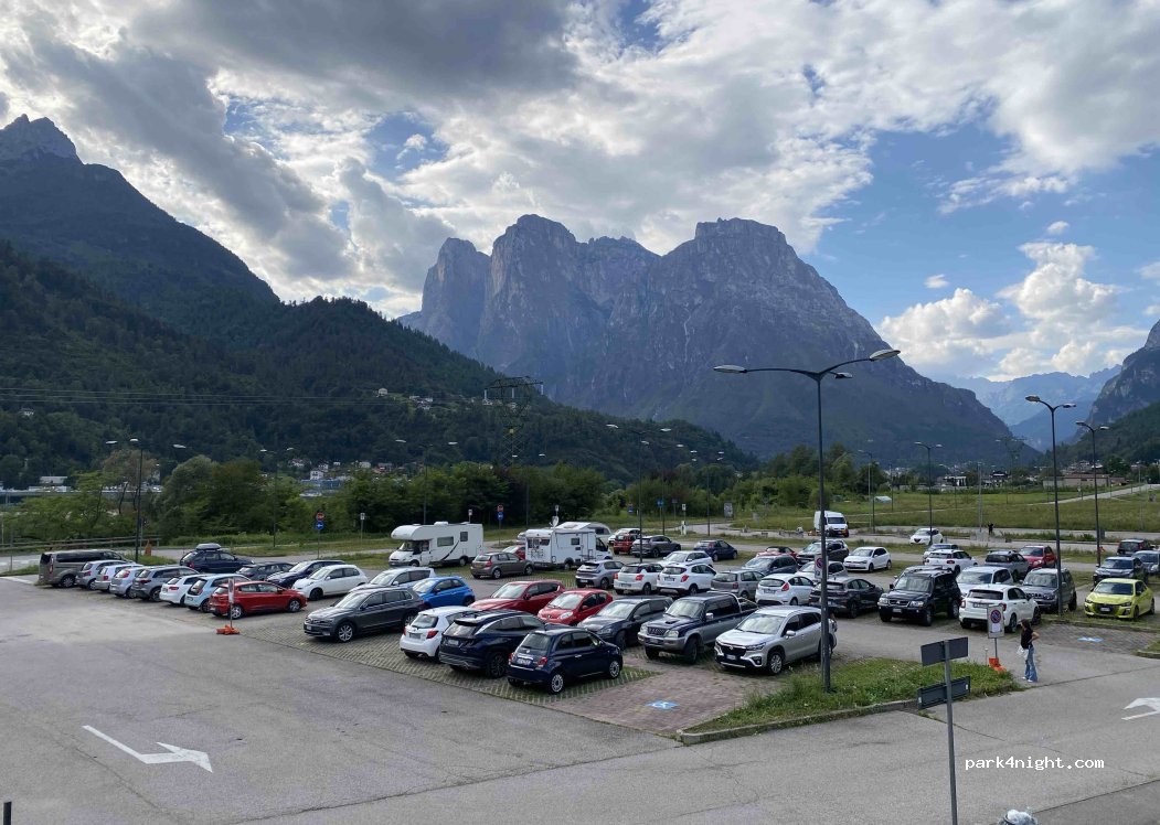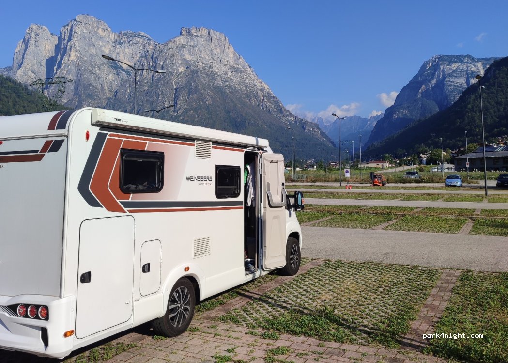 Big parking 5 min from Agordo town hall and downtown. Overnight stay is tolerated but police pass by every morning to check and eventually sanction.