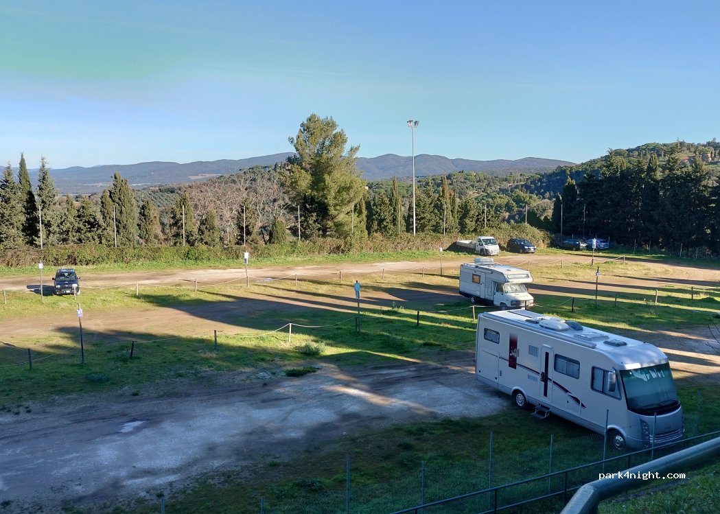 il parcheggio si raggiunge scendendo una strada stretta e con rami sporgenti essendo un ex campo da calcio il posto e' perfettamente pianeggiante e spazioso ha piovuto ed e' diventato fangoso abbiamo dormito in tranquillità ottima la vicinanza al centro storico di Castagneto Carducci peccato che non ci sia alcun tipo di servizio : ci sono i bagni dei vecchi spogliatoi ma chiusi consigliato