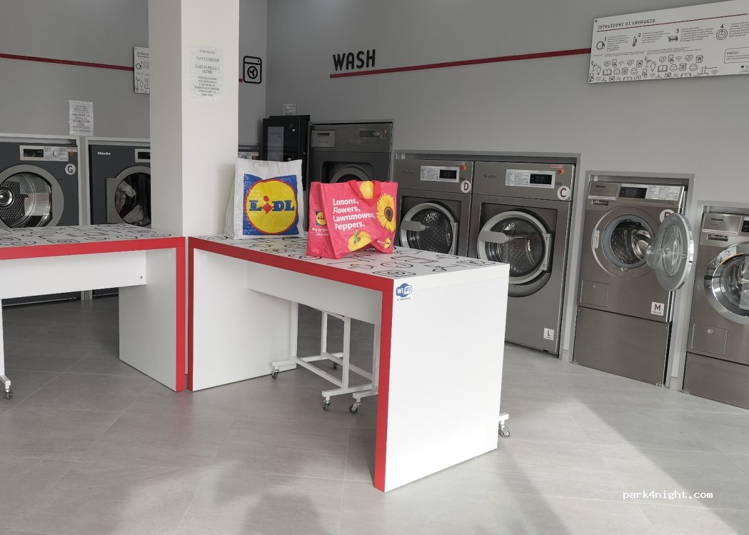 Meilleure laverie qu’on ai fait en voyage. Beaucoup de grand stationnement, machine de qualité et écran très intuitif. Paiement facile acceptant des billets de 50€ ce qui est rare. Beaucoup de place, des tables et paniers à disposition pour le pliage.