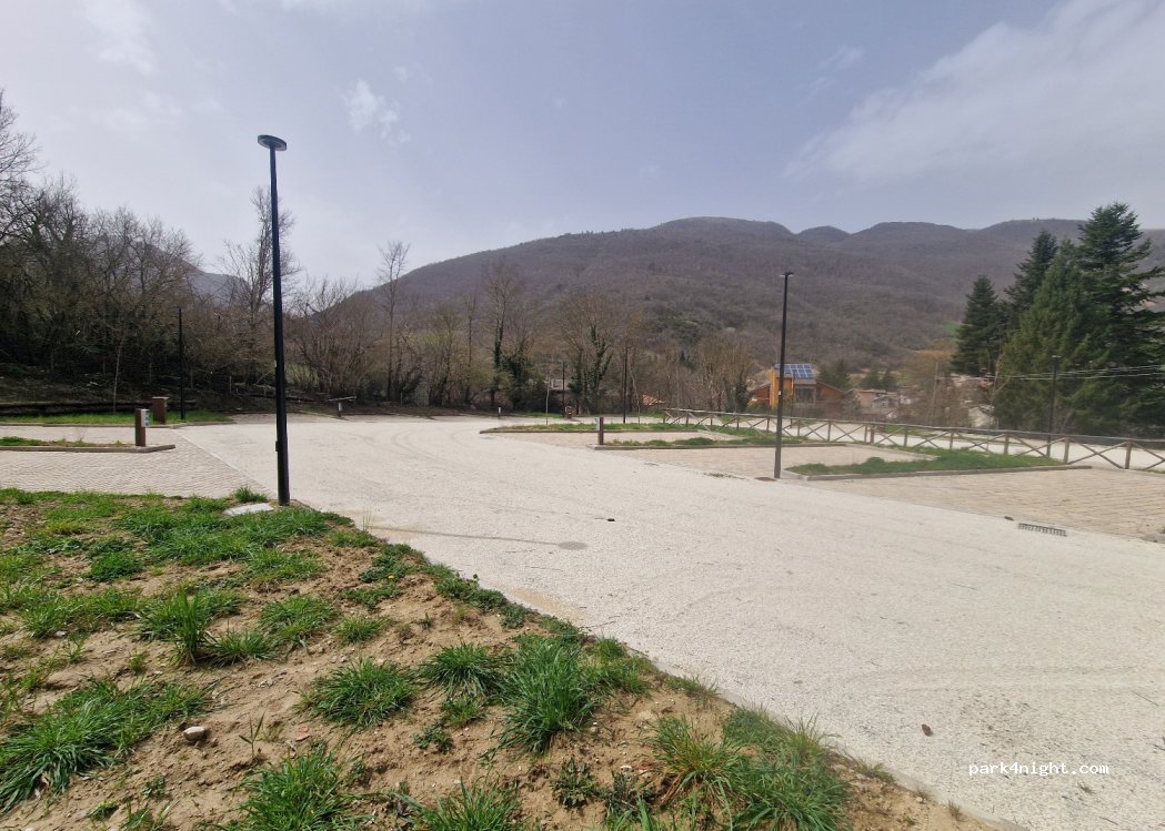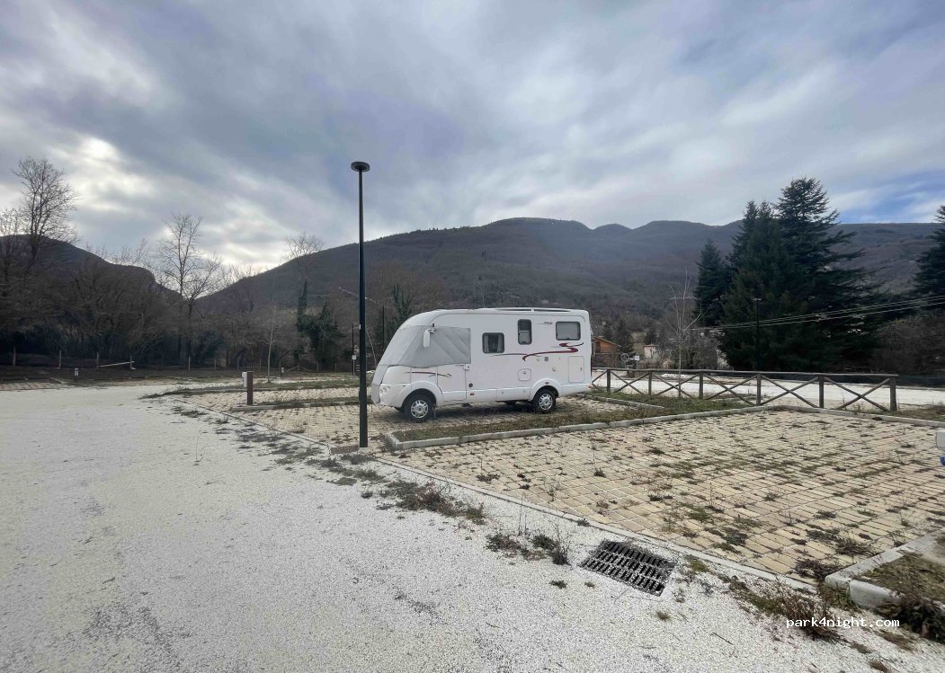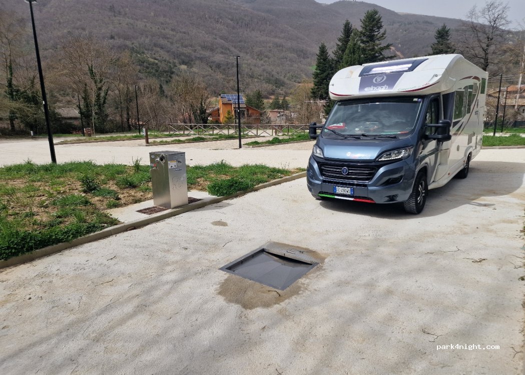Area di sosta silenziosa illuminata pianeggiante moderna. A poco dal centro cittadino. Presente energia ancora non funzionante. Scarico presente acqua solo dalla fontanella presente. Credo che per l’immediato futuro venga attivato tutto.