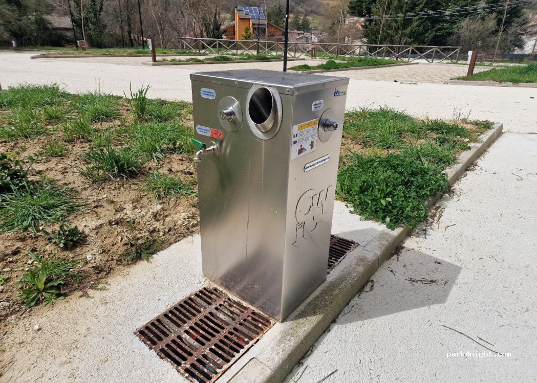 Area nuova ma manca l'acqua nei servizi di carico scarico si rischia l'intasamento, acqua solo disponibile da una fontanella all'ingresso