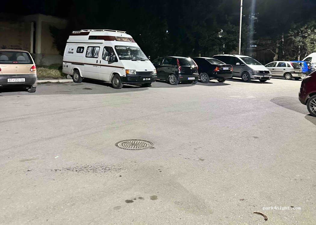 We parked up on a Saturday …game day… turns out Macedonia goes crazy for handball. Got woken up at 3am to a man tapping at the window asking for cigarettes. Think we got unlucky with an active night. Great location to visit the centre and the park.