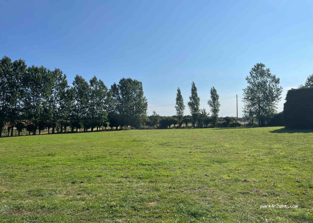 Very quiet, secure and well maintained. Very friendly and helpful owner. Choice of hard standing or grass if dry. Short walk to local bakery, bars and resto. Electricity and water available as advertised. A relaxing stop over - thank you Madame for sharing your land with campingcaristes!