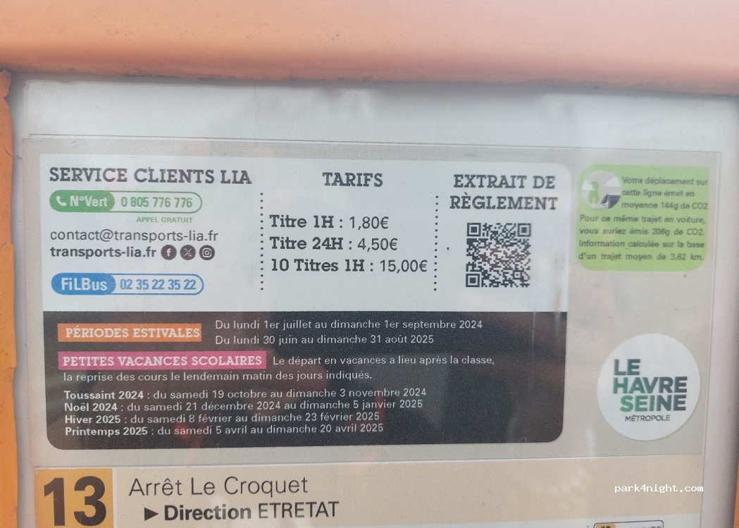Idéalement situé, à proximité de la vélomaritime et des transports en commun. Sur 1 weekend possibilité avec un ticket de bus 24 heures (4.50€) de se rendre au Havre et à Etretat sans se soucier du stationnement. Eau et électricité. Pas de vidange Très calme, excellent accueil
