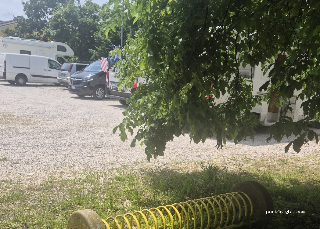 Nous avons dormi et passé une journée dans le parc (sur le parking), le portail n’est pas fermé la nuit et nous n’y avons pas vu d’horaires. L’eau ne fonctionnait pas et les WC étaient fermés, même la journée. La police est passée pour un contrôle de papier et nous a dit que c’était ok de rester ici. L’endroit est calme la nuit. Très bien avec des enfants.