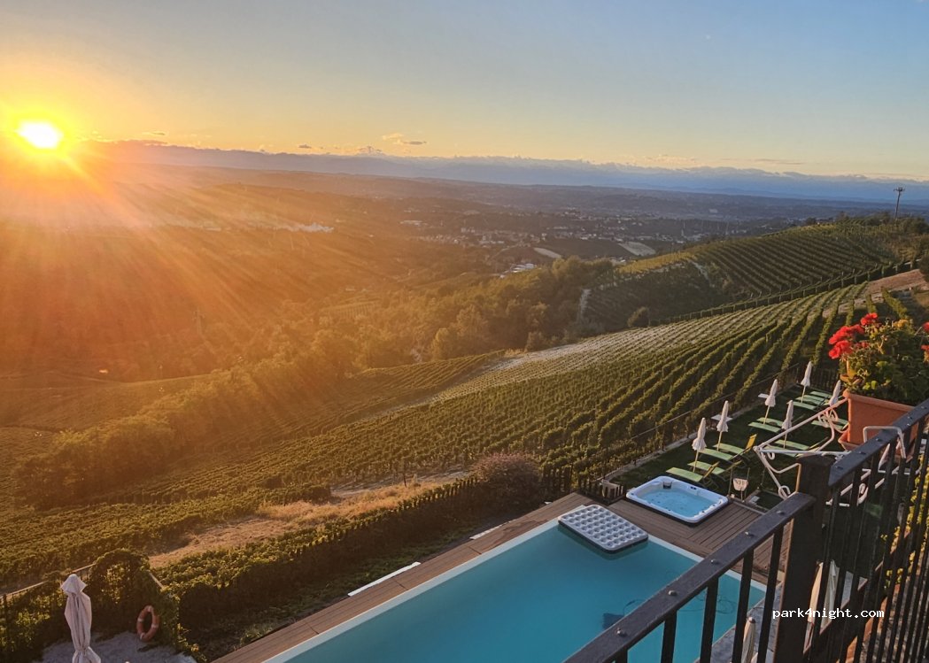 Ein großartiger Platz. Wir haben den Sonnenuntergang beim Abendessen im Restaurant sehen können und morgens den Sonnenaufgang aus dem Wohnmobil. Es lohnt sich sehr, das Restaurant zu besuchen. Anfahrt über Bricco di Neive!