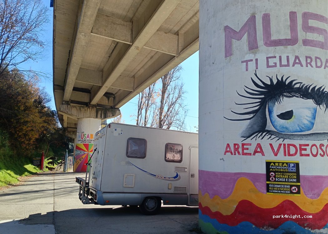 Parcheggio del Museo d'Arte sotto il ponte dell'autostrada. Costo 10 euro a persona. Aperto dalle 10:00 alle 14:00.