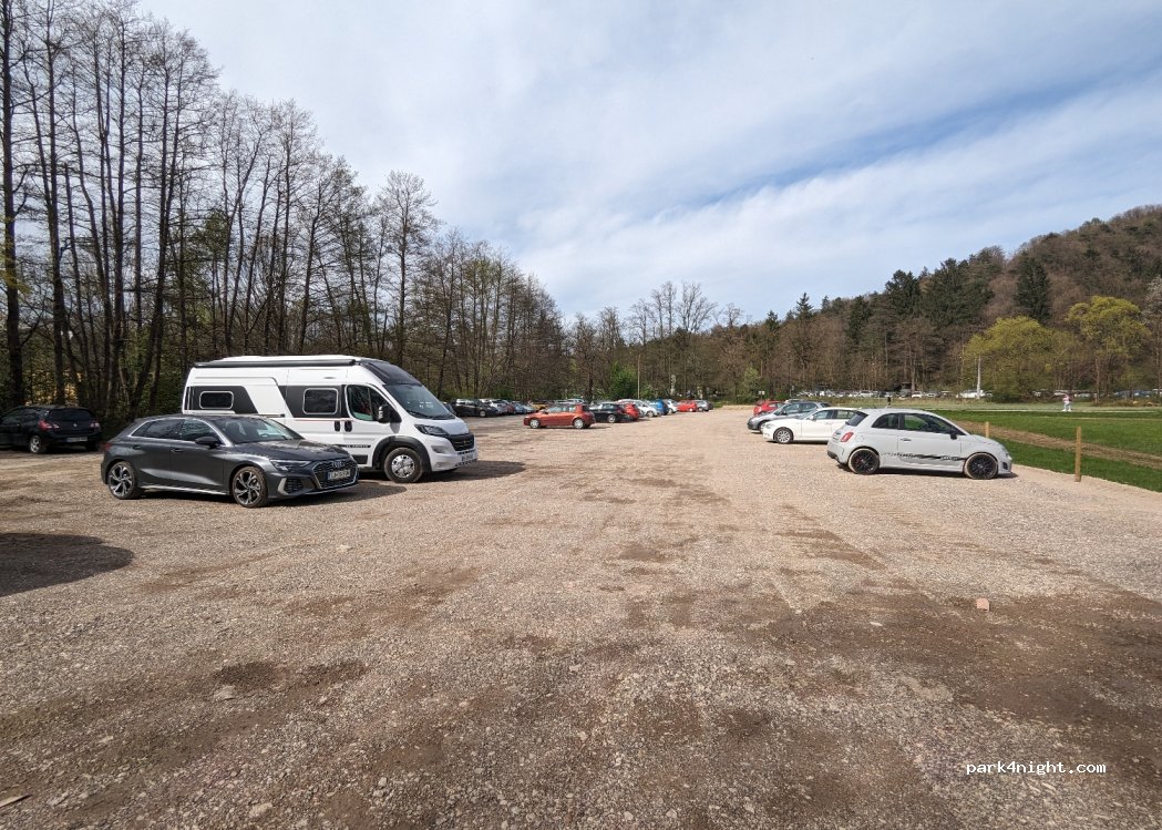 Der Hauptparkplatz ist für Transporter zu eng. Es gibt kein Verbotsschild.