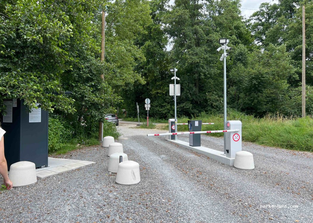 (Addendum 23.06.2024): there is now a new barrier system, see pictures. We got through with our camper with alcove L: 8.50m W: 2.60m H: 3.20m. Day ticket 6€, but you can also book monthly tickets, so I think you can also park overnight.
