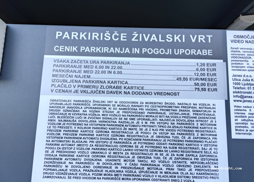 non facilissimo da trovare la sera, il navigatore ti manda al parcheggio principale dello zoo che è chiuso; bisogna entrare nella via precedente (arrivando da lubiana). parcheggio sterrato molto tranquillo dove abbiamo dormito per visitare lubiana. 12 euro per la notte.