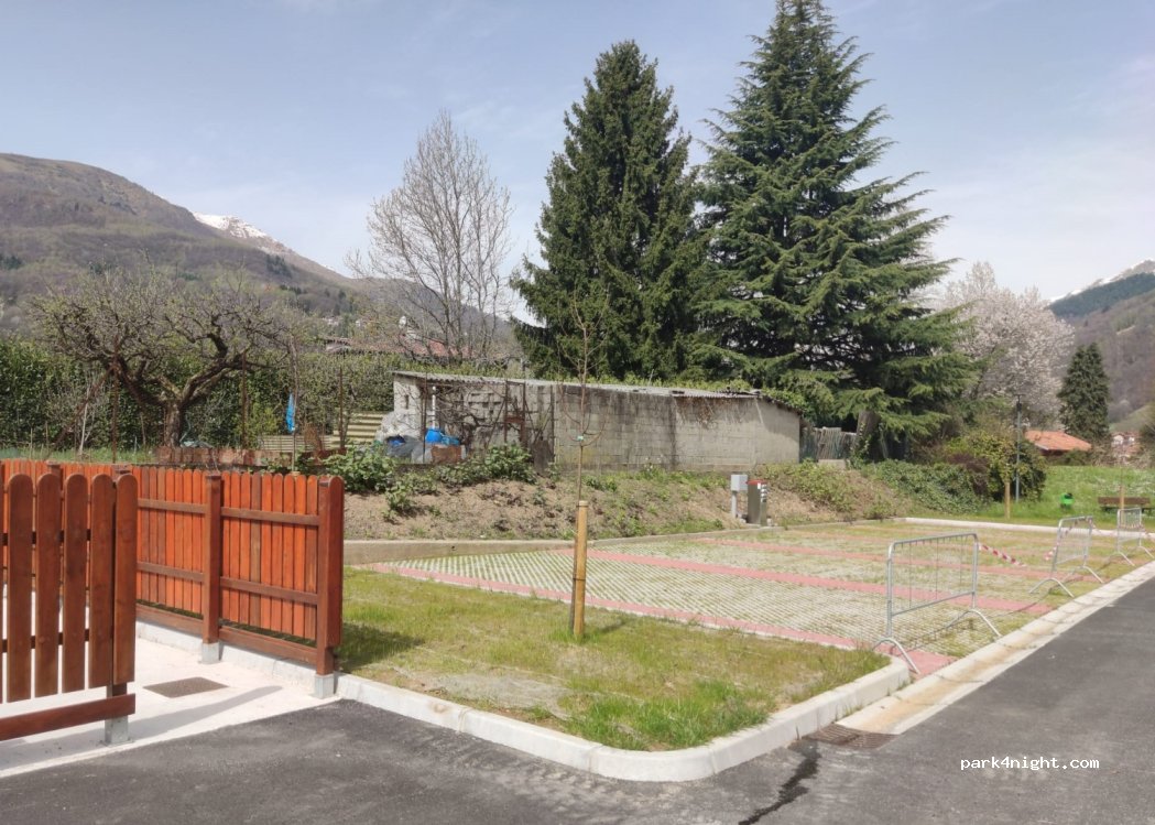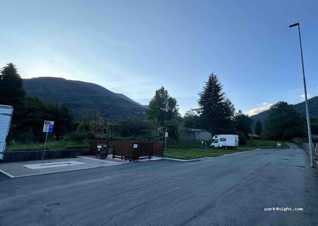 Perfect location at the beginning of Valle Cervo for filling up water, electricity, and emptying grey and black water. As of today, no trash containers available, but I suspect they will be (fenced space without anything inside for now) I wouldn't recommend staying here for the night, as it's next to the main road, but perfect place for a quick pitstop. A big thank you to the comune of Sagliano Micca! A playground is just nearby at the main square.