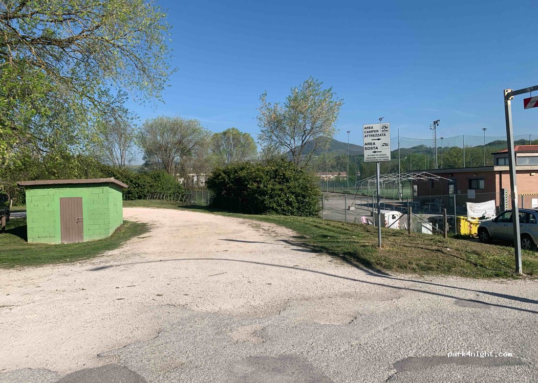 We had a short stay in this parking lot, we were the only ones there and we didn't feel very safe but nobody bothered us. The pitches were grassy and muddy but large and flat, a few were also shaded. Nearby there is a point where it is possible to discharge waste water and refill fresh water but we did use it so we don't know if it works. Everything was completely free.