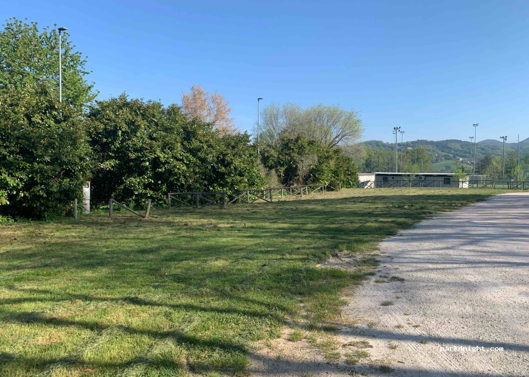 Al momento erba altissima impedisce di parcheggiare quindi l'area è impraticabile. c'era una colonnina per l'elettricità ma è fuori servizio.