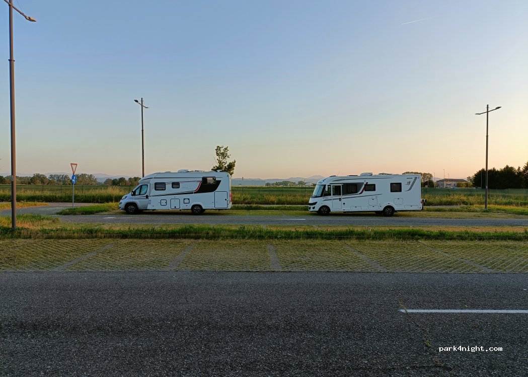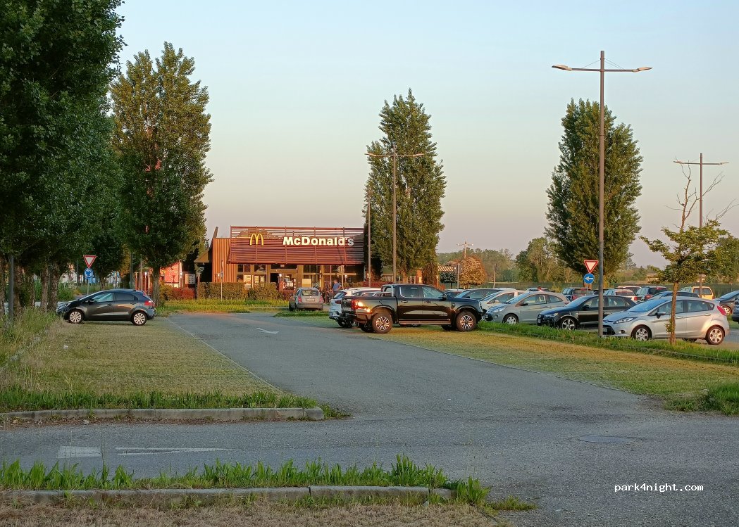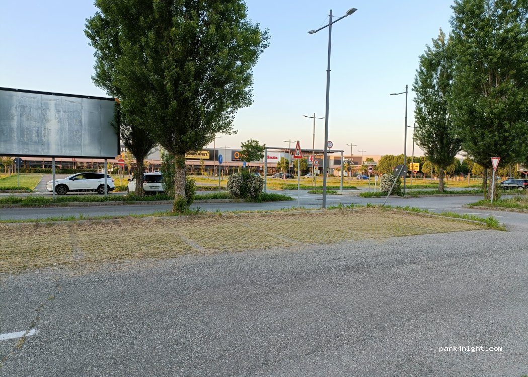 Si tratta della parte più esterna del parcheggio del centro commerciale (non dell'outlet), adatto ad ogni tipo di camper. Nessun servizio e a parte di un po' di movimento verso il Mc Donald, abbiamo dormito tranquillamente.