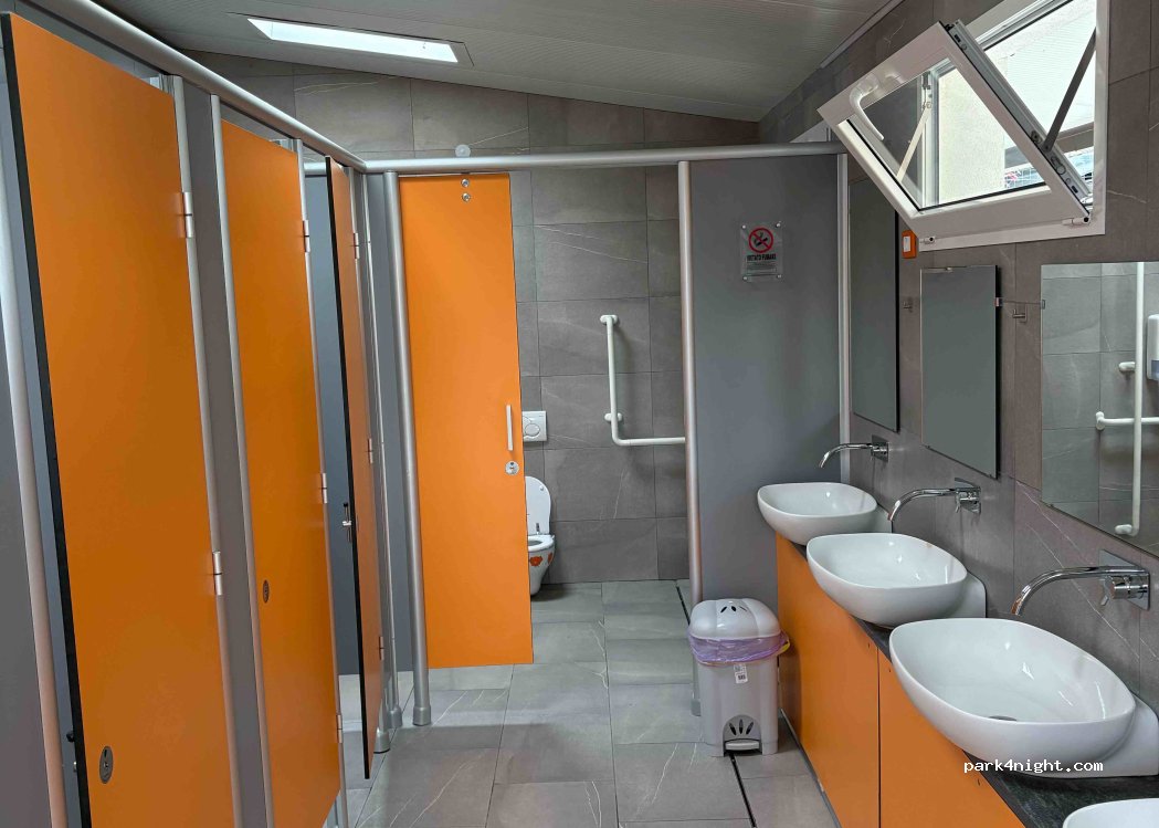 A wonderful camping near Sestri Lavante. Clean sanitaries, free showers, soap and toilet paper provided. The view to the sea is amazing. There is a nice swimming pool that our children adored. Each place has 6A of electricity, own water sink. There is a bar, small supermarket where you can buy basic products, the swimming caps, electricity adapter etc. In the morning there are fresh rolls sold.