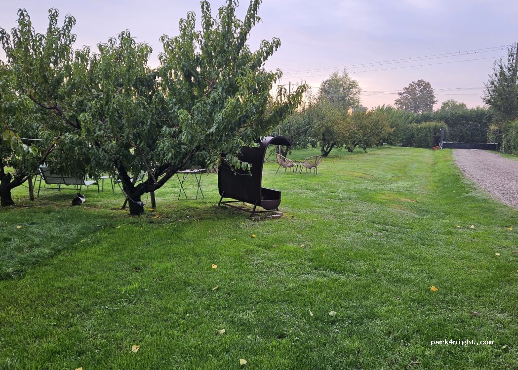 Ottimo posto dove sostare nel verde, in mezzo agli alberi di pesco e agli animali della fattoria, complimenti a Maria e a suo marito ultra 90enni che insieme alla famiglia si occupano della fattoria. Abbiamo trascorso una piacevole notte dopo aver cenato al ristorante, ottimo cibo, prezzi medio alti