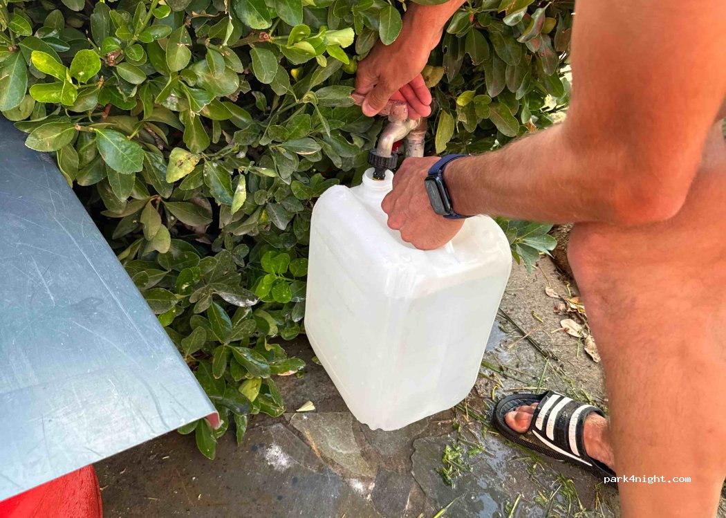 We asked the gas station employee for water, he told us that we can fill our container from the tap without any problem.