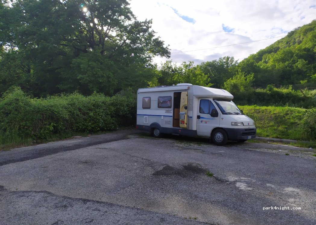 Ampio parcheggio in piano, l'ideale per fermarsi e fare una visita alle vicine Sorgenti di Santa Susanna. Poca ombra.
