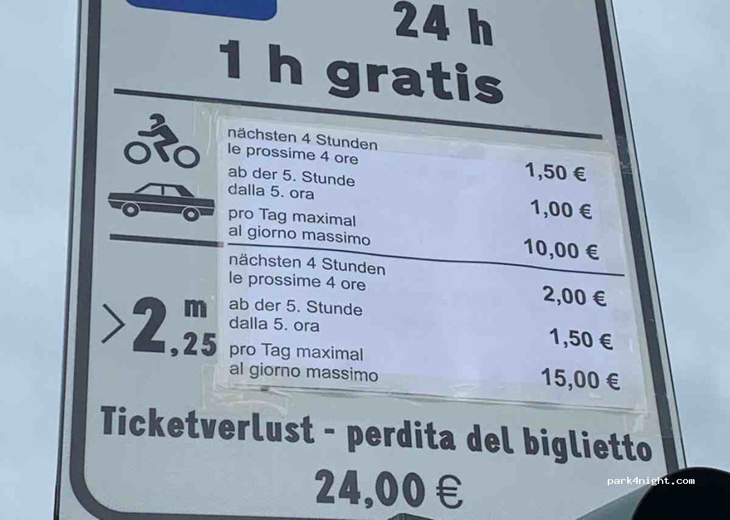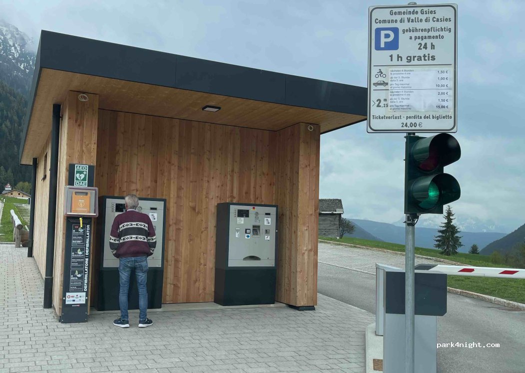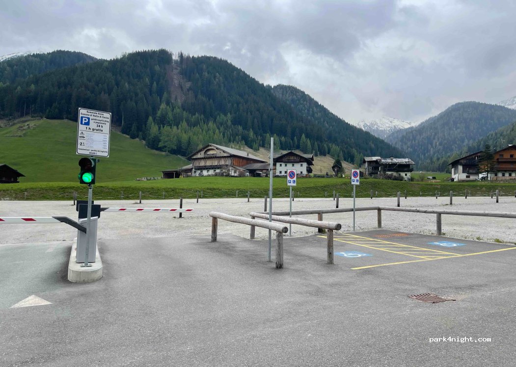 Siamo arrivati mercoledì 1 maggio 2024 ed erano ammesse solo auto e moto quindi lo abbiamo tolto da ParkForNight. Siamo tornati lunedì 6 maggio ed avevano cambiato i cartelli quindi lo abbiamo rimesso. Non ci abbiamo dormito ma è una strada poco trafficata e di notte non passa quasi nessuno in quanto è praticamente alla fine della valle.